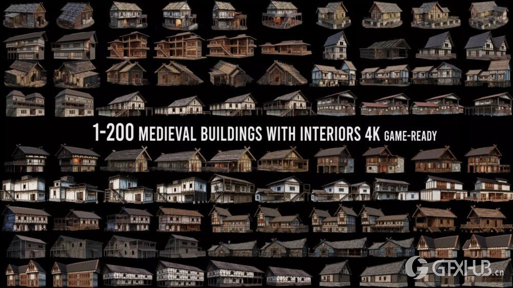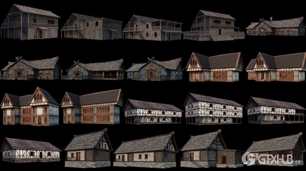 中世纪欧洲老房子建筑3D模型合集 200 OLD MEDIEVAL HOUSES BUILDINGS PACK