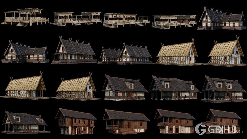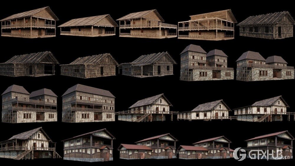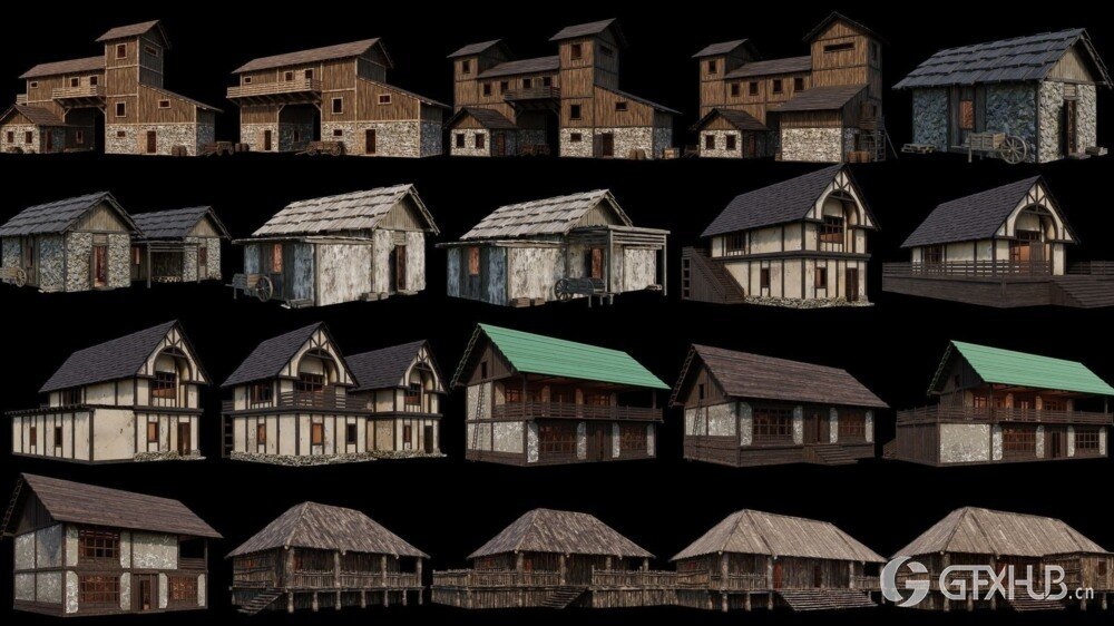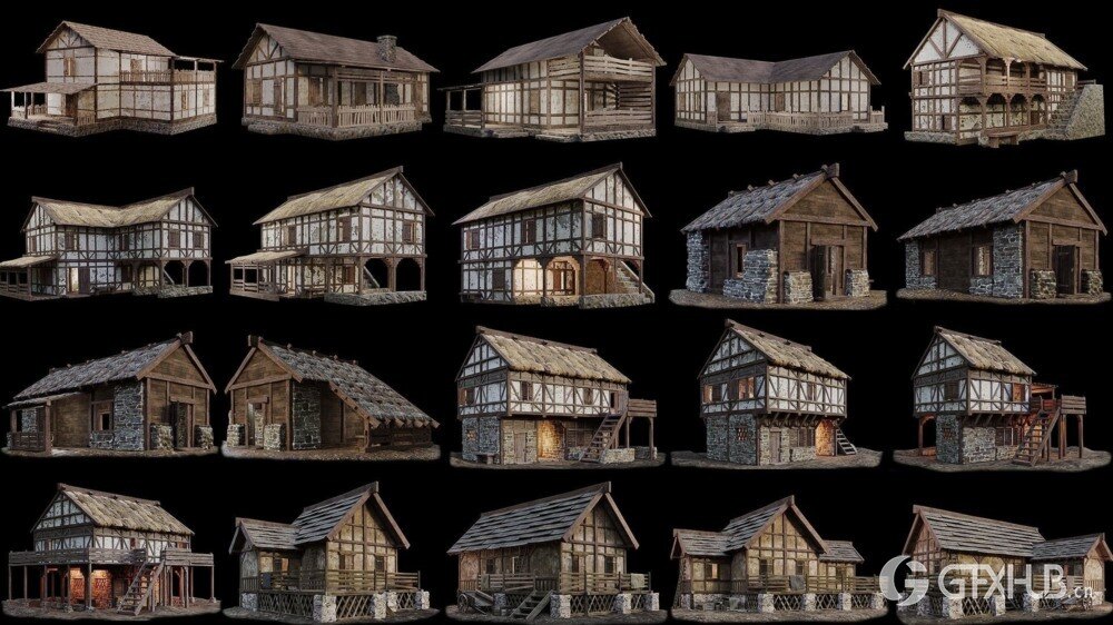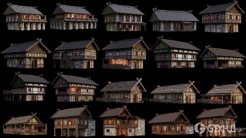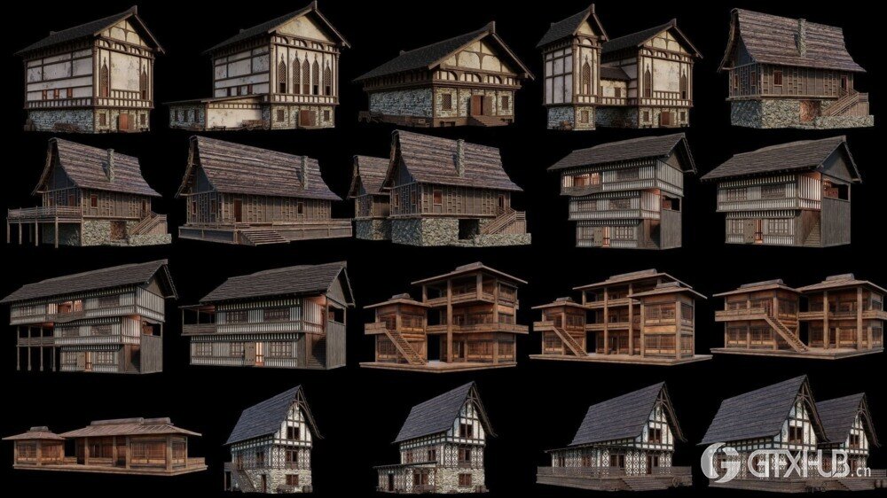 中世纪欧洲老房子建筑3D模型合集 200 OLD MEDIEVAL HOUSES BUILDINGS PACK